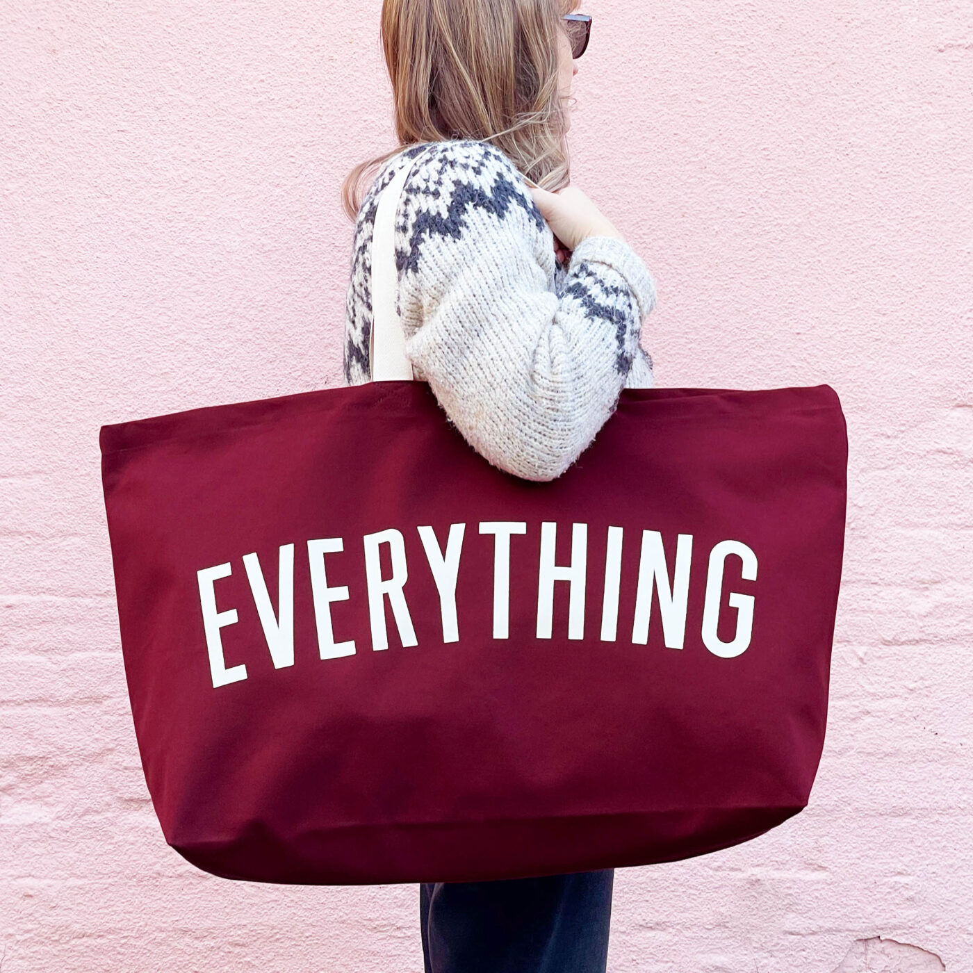 We’re welcoming the really big EVERYTHING canvas bag in Burgundy to our collection. Sitting alongside the classic ecru, black, grey and tan we’ve added some gorgeous new shades including this Burgundy. This shade is perfect for the festive season and would make an amazing gift bag for large, hard to wrap items this Christmas.