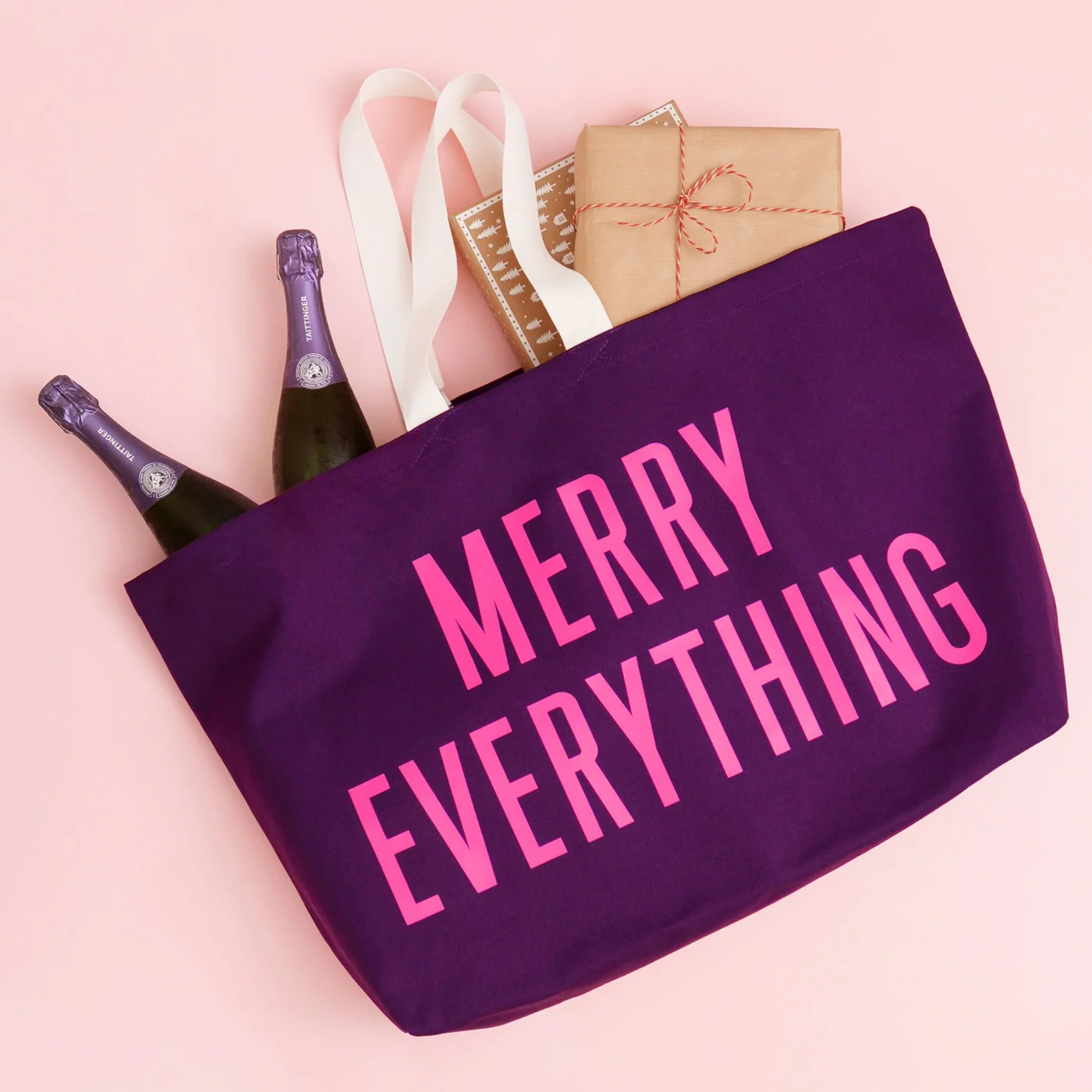 Bright hot pink “Merry Everything” print