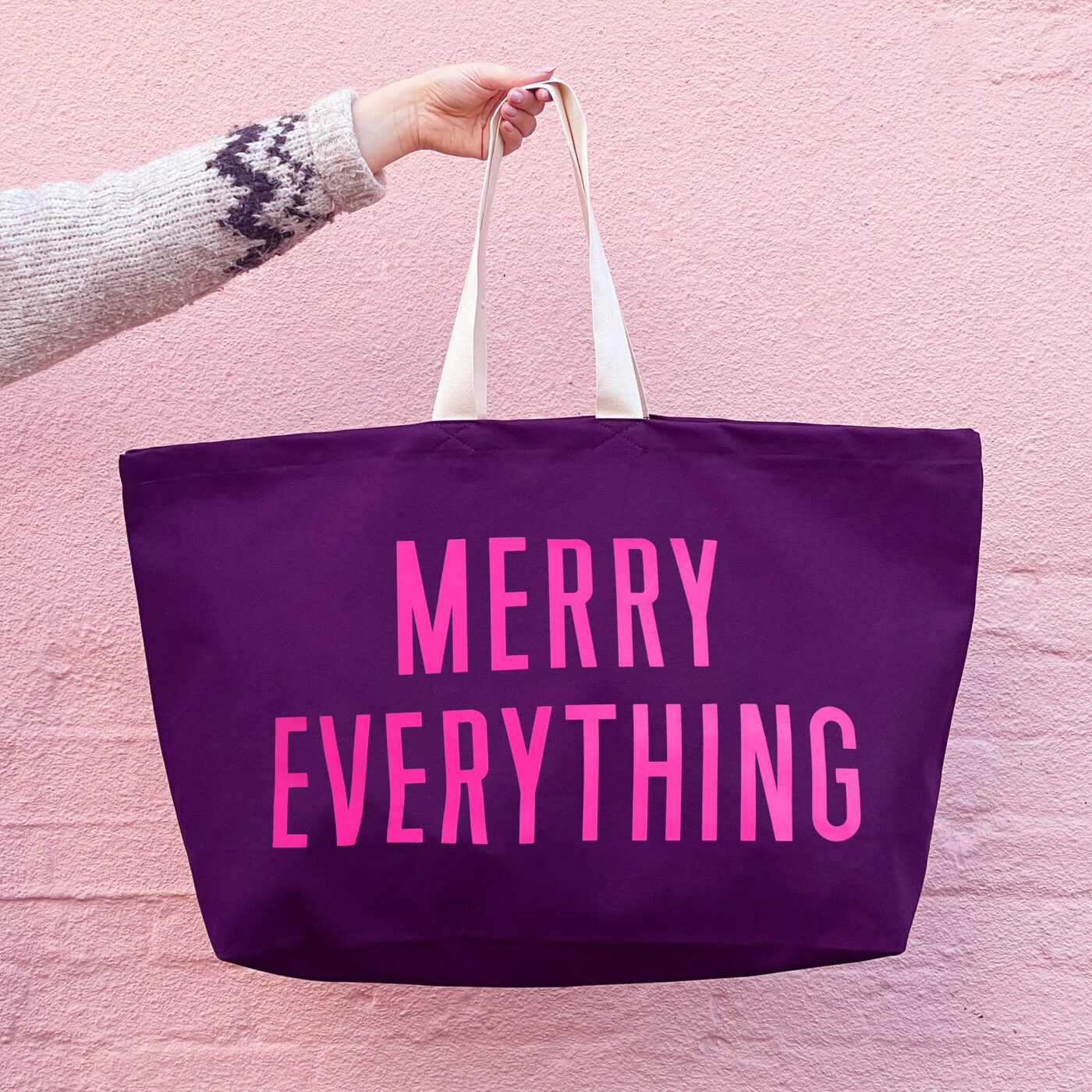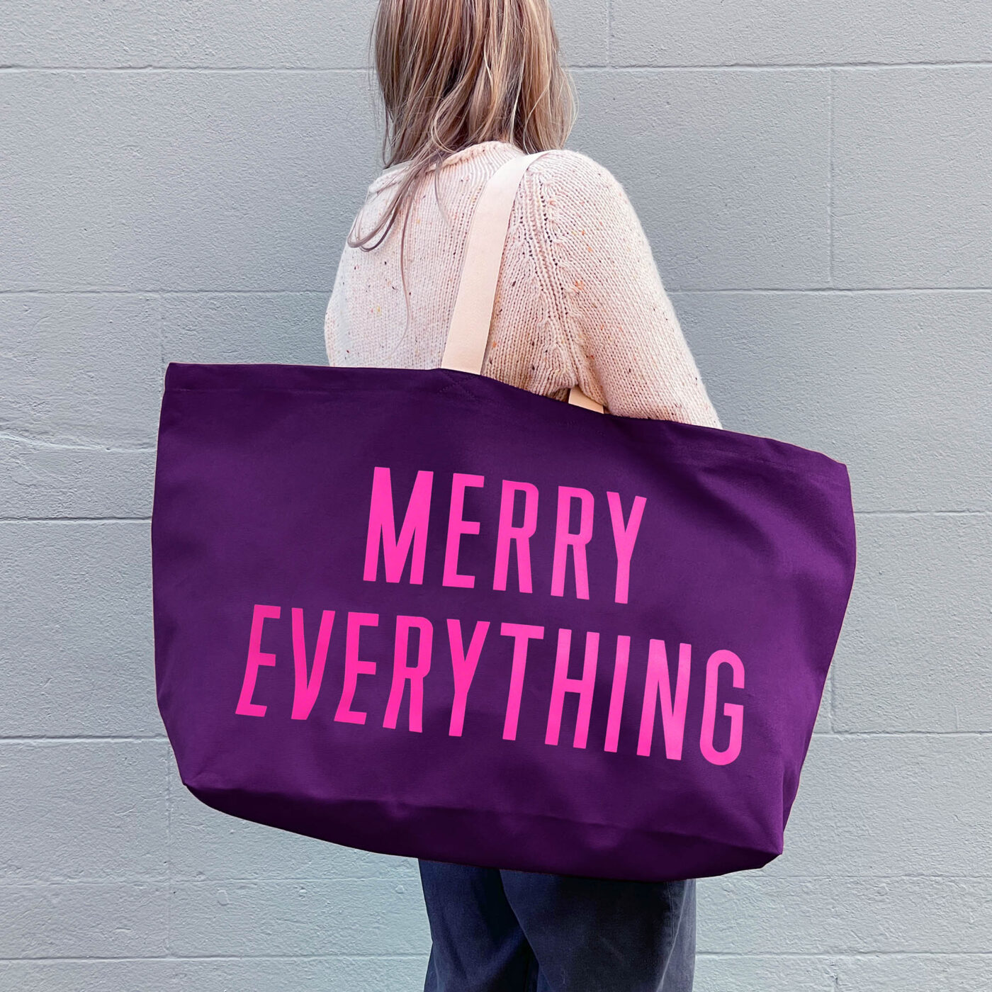 Add some extra sparkle to your season with the Merry Everything Tote Bag. This oversized canvas tote is designed for all your festive adventures — from Christmas shopping trips to family gatherings. It’s even big enough to use as a stylish Christmas gift sack or a reusable holiday hamper.